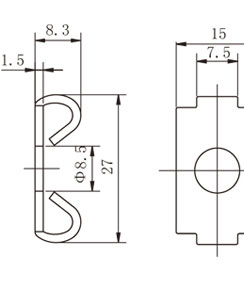 30系列鋁型材彈性扣件適用于30系列槽8規格鋁型材之間直角連接,將其插入一端型材槽內,搭配相應規格螺栓配套使用,彈性扣件主要適用于震動環境下應用框架的組裝連接,可以有效地防止松動; |